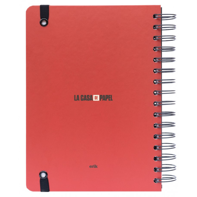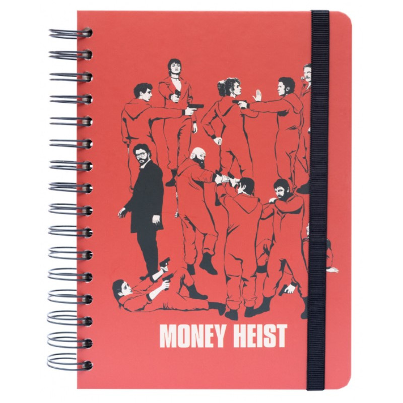 Una libreta que destaca nada más la ves por el llamativo diseño de su portada, en el que aparecen todos los personajes principales de la banda de atracadores que protagoniza La Casa de Papel, apuntando a otro con una pistola. Es realmente elegante, con unos detalles muy cuidados, que puedes llevar en cualquier lado y con la que estarás deseando dibujar o escribir algo y así tener una excusa para mostrarla. Tiene tapa dura, un bolsillo interior, cierre con banda elástica y un interior punteado con greca.