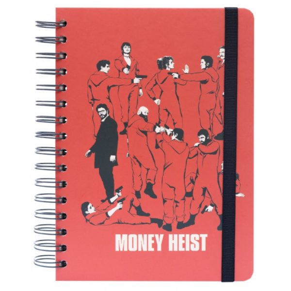 ¡Una auténtica maravilla de libreta o cuaderno! Es de tamaño aproximadamente A5 (15 cm x 21 cm), de tapa dura, y su diseño está basado en La Casa de Papel, una de las series más originales de los últimos años.