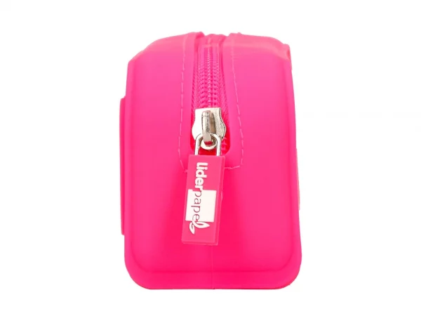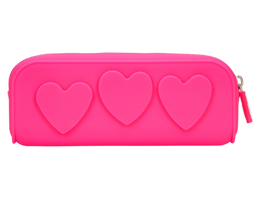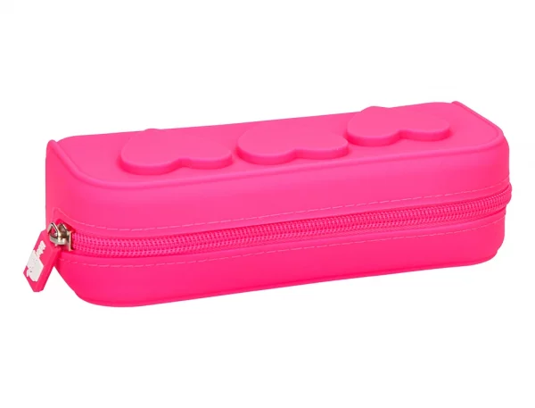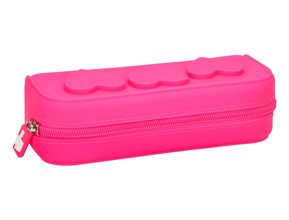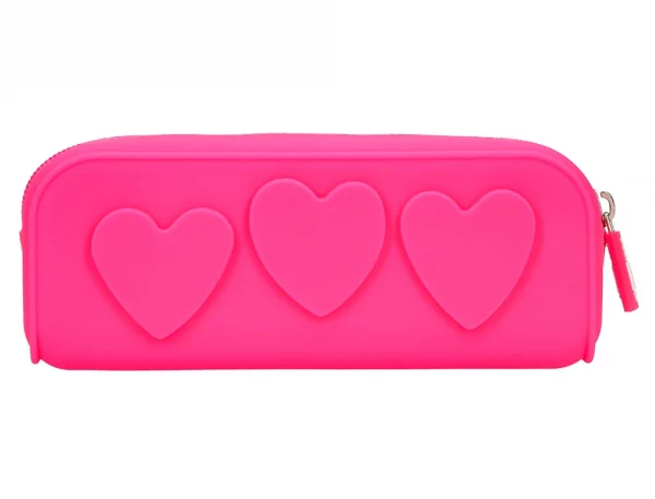 Bolso escolar portatodo fabricado en silicona de alta calidad con acabado tacto suave. Detalle de corazones en relieve. Con cremallera, flexible y moldeable. Resistente al agua y muy fácil de limpiar. 4 colores surtidos: menta, lavanda, fuxia y celeste. Medidas: 180 x 70 x 53 mm.